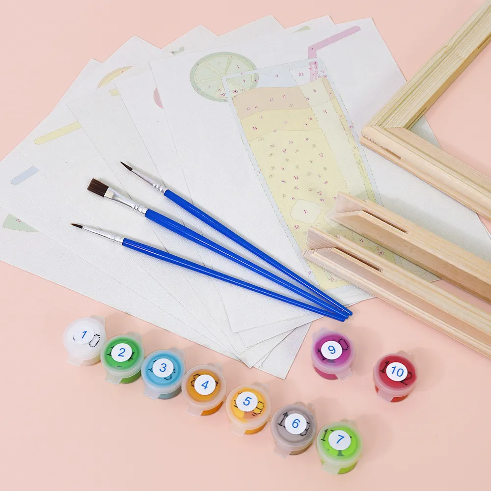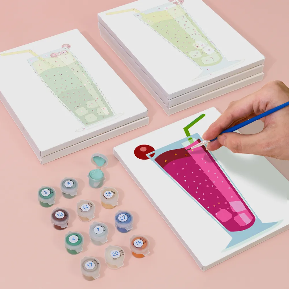 Le mini kit de Peinture par Numéros « Boissons Fruitées Pétillantes » associe la fraîcheur fruitée à des couleurs éclatantes. Que ce soit avec des oranges, des baies ou des citrons verts, ce motif éclatant apporte de la joie estivale et de l’énergie créative à votre toile. Idéal pour les journées chaudes, les pauses créatives ou comme cadeau coloré. Avec une mini toile pré-imprimée, des peintures acryliques lumineuses et un pinceau assorti, ce kit est parfait pour les débutants, les enfants et les fans de DIY.
