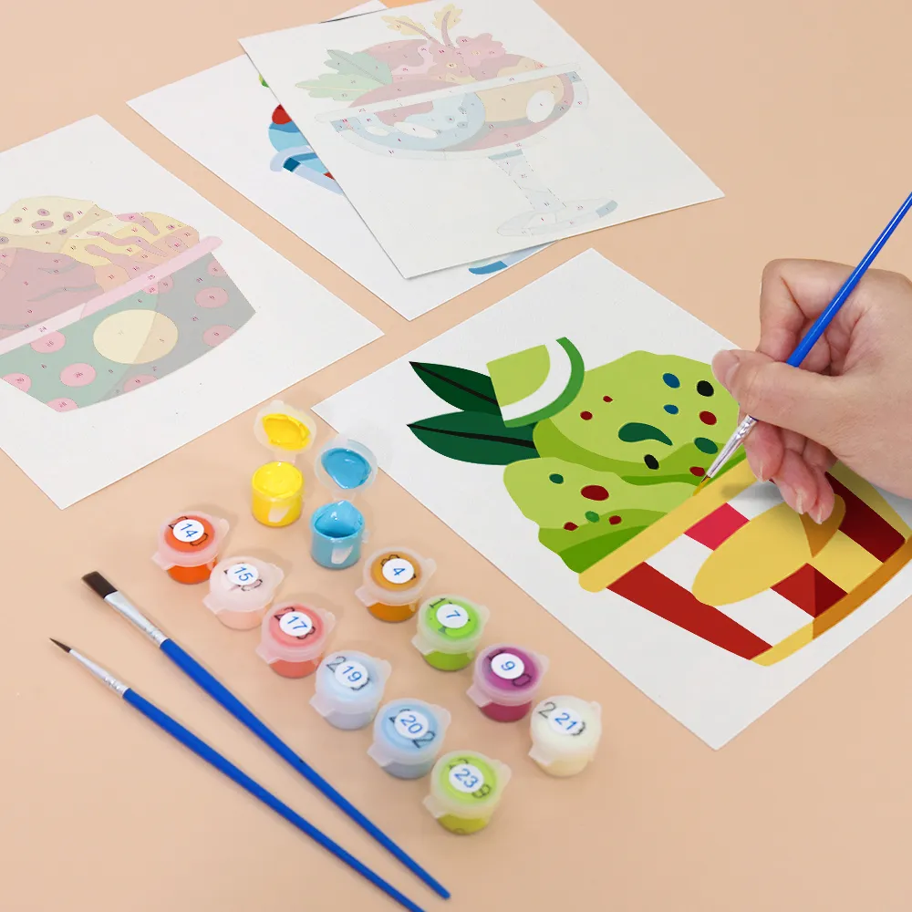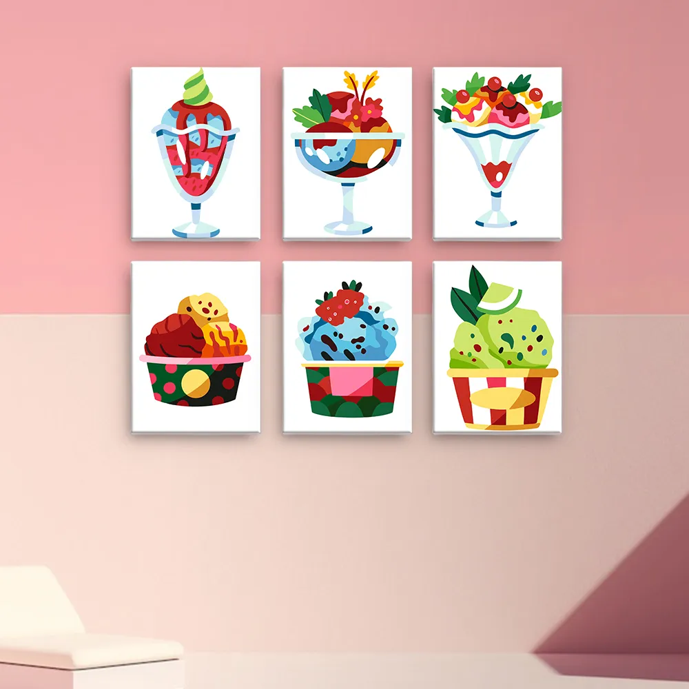 Le mini kit de peinture par numéros « Desserts Givrés » apporte un doux rafraîchissement à la toile. Que ce soit de la crème glacée, du sorbet ou des coupes de desserts colorées – ce motif allie plaisir, légèreté créative et ambiance estivale. Parfait pour les enfants, les débutants ou comme petit cadeau pour les gourmands. La mini toile pré-imprimée, les peintures acryliques vives et le pinceau assorti garantissent un plaisir de peindre simple, plein de couleurs et de douceur.