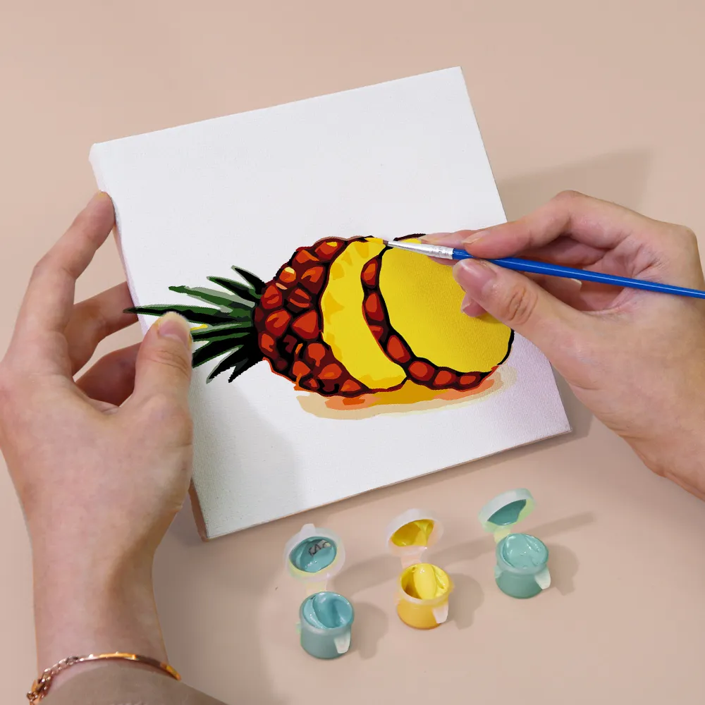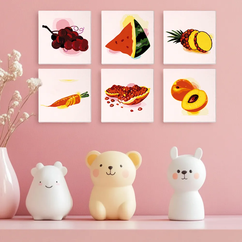 Le mini kit de peinture par numéros « Fruits et Légumes » apporte des couleurs fraîches, une variété saine et une énergie créative à votre toile. Des carottes croquantes aux fraises juteuses, ce motif combine plaisir et expression artistique. Idéal pour la décoration de cuisine, les petits projets DIY ou comme idée cadeau pour les amateurs de bonne chère. Avec une mini toile pré-imprimée, des peintures acryliques lumineuses et un pinceau, l’expérience de peinture est simple, colorée et relaxante – même pour les débutants.