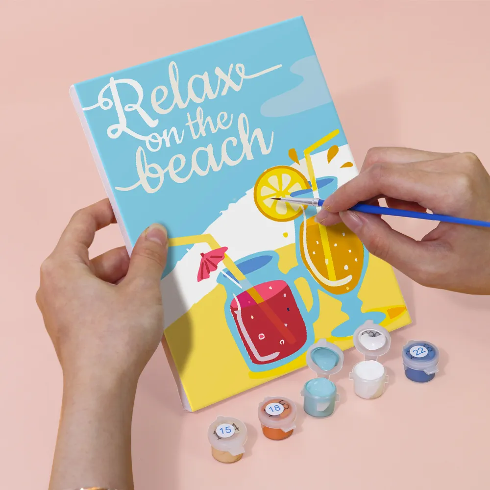Le set Mini Peinture par Numéros « Jours d’Été » immortalise des moments ensoleillés inoubliables sur la toile. Avec des éléments comme des tongs, des palmiers, le soleil ou des boissons fraîches, le motif dégage une pure sensation de vacances. Idéal pour des pauses créatives en été, comme souvenir ou pour une décoration à l’ambiance balnéaire. Le set contient une mini toile pré-imprimée, des peintures acryliques lumineuses et un pinceau – parfait pour les débutants et les amoureux de l’été.