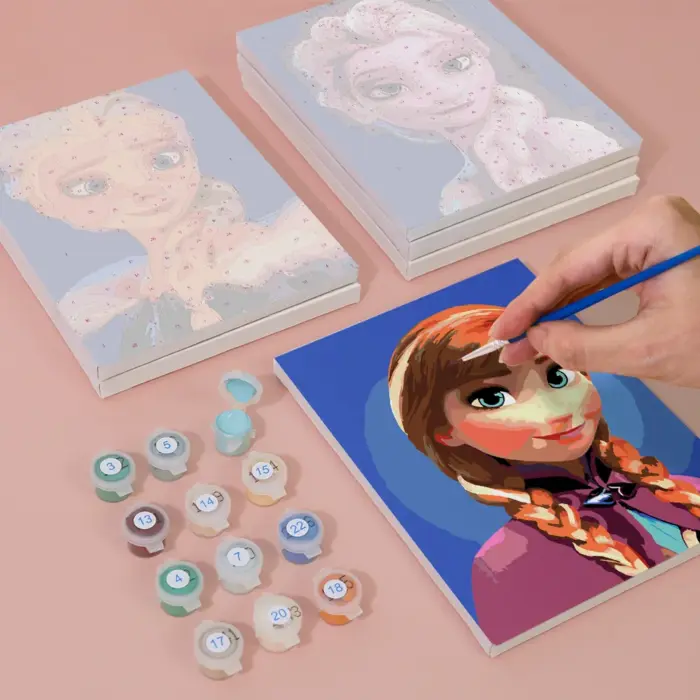 Le kit Mini Peinture par Numéros “Les Sœurs d’Arendelle” représente deux princesses enchanteresses d’un royaume glacé – un motif adorable qui capture la magie de l’amitié et de la famille. Idéal pour les enfants et les fans d’aventures féeriques. Avec une mini toile pré-imprimée, des peintures acryliques colorées et un pinceau, ce kit est parfait pour des après-midis créatifs et des œuvres d’art féeriques – facile à réaliser, même pour les petits artistes.