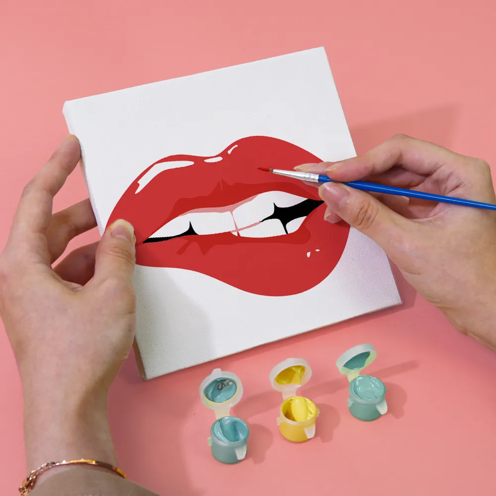 Le mini kit de peinture par numéros “Lèvres Roses” est un motif élégant avec une touche moderne. Les lèvres sensuelles d’un rose éclatant représentent la confiance, l’élégance et le style pop art – parfait pour les personnalités créatives avec du style. Idéal pour les amateurs de beauté, les passionnés de décoration ou comme cadeau tendance. Avec une mini toile pré-imprimée, des peintures acryliques vibrantes et un pinceau assorti, l’œuvre est facile à créer – même pour les débutants.