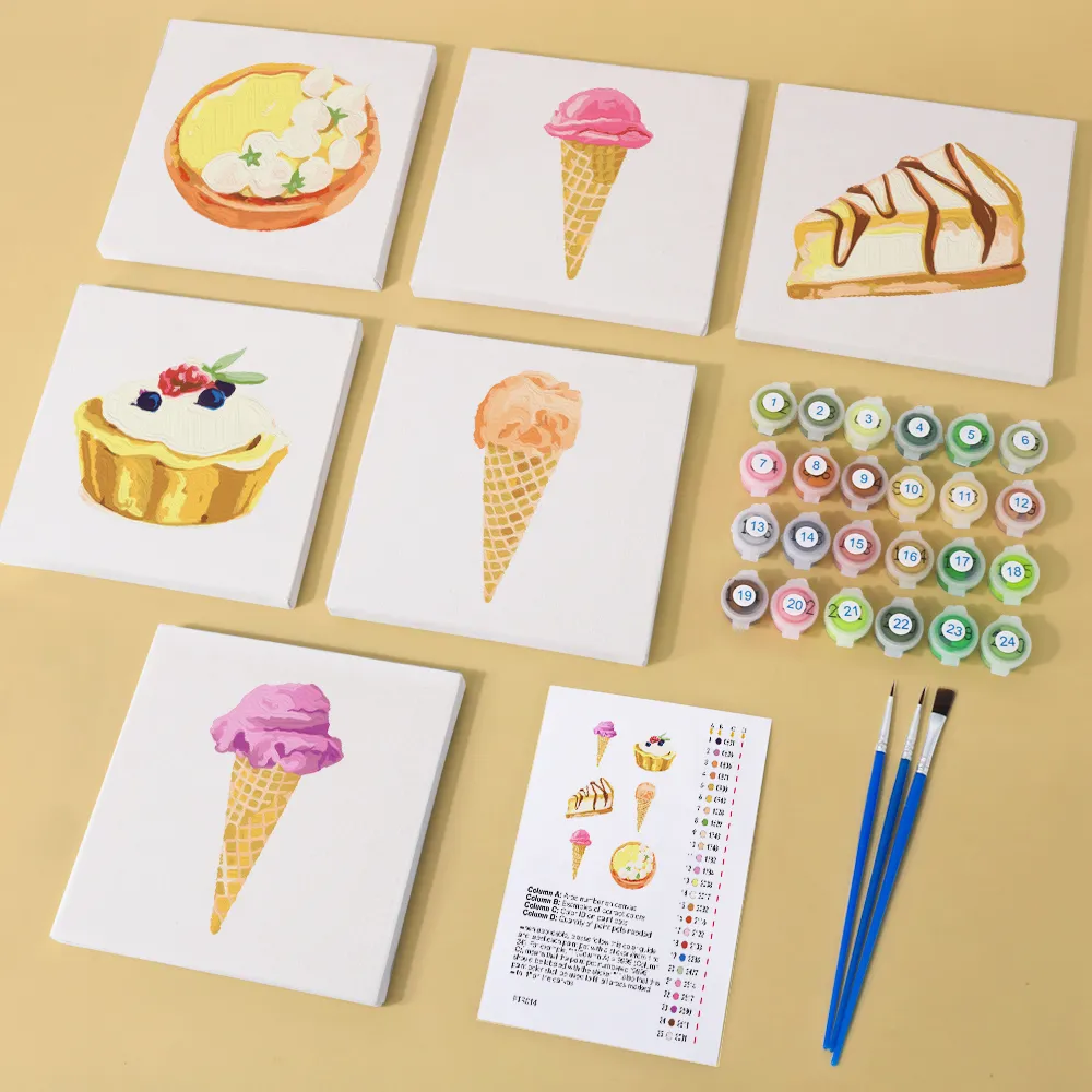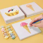 Le kit de mini peinture par numéros “Glaces” apporte fraîcheur estivale et plaisir sucré sur la toile. Que ce soit dans un cornet, une coupe ou avec des garnitures colorées – les motifs de glaces éclatants vous mettent instantanément de bonne humeur. Parfait pour les pauses créatives, les enfants ou comme cadeau DIY original. La mini toile pré-imprimée, les peintures acryliques vives et le pinceau garantissent une expérience de peinture détendue, pleine de couleurs et de joie.