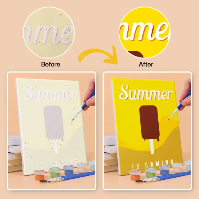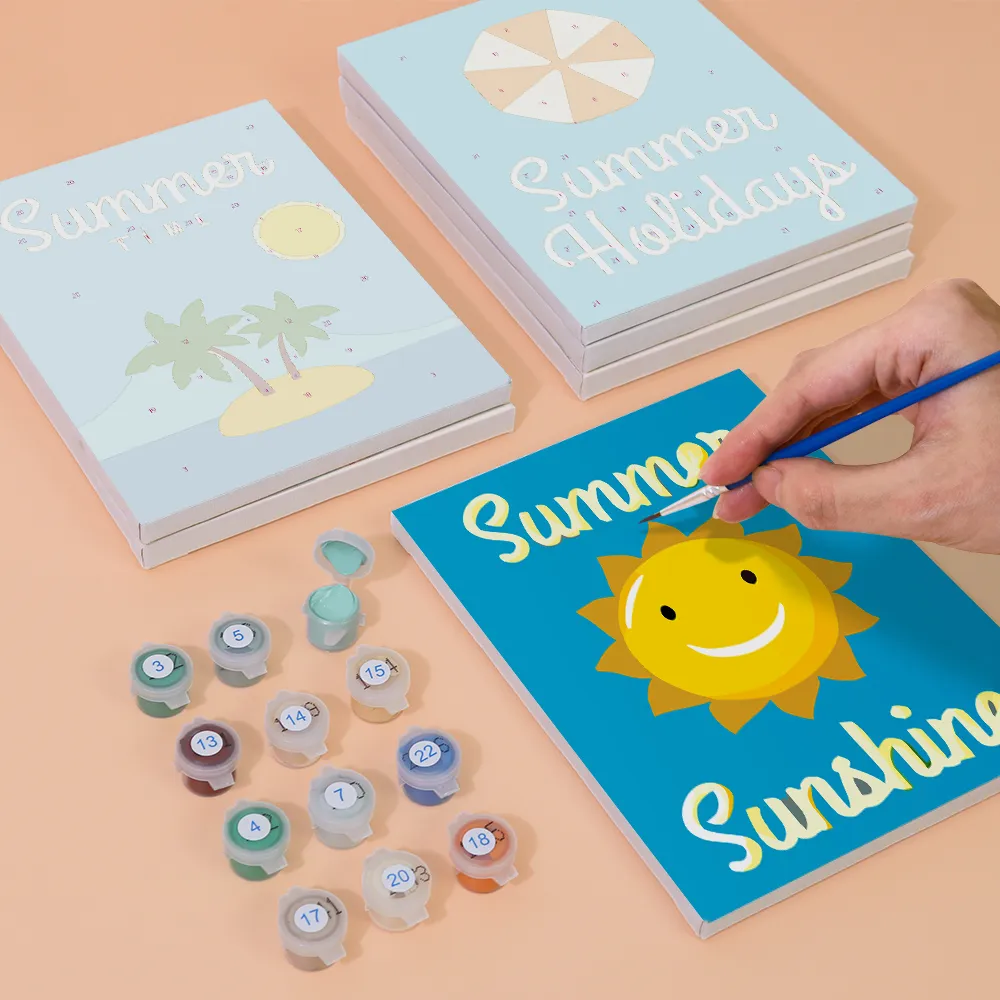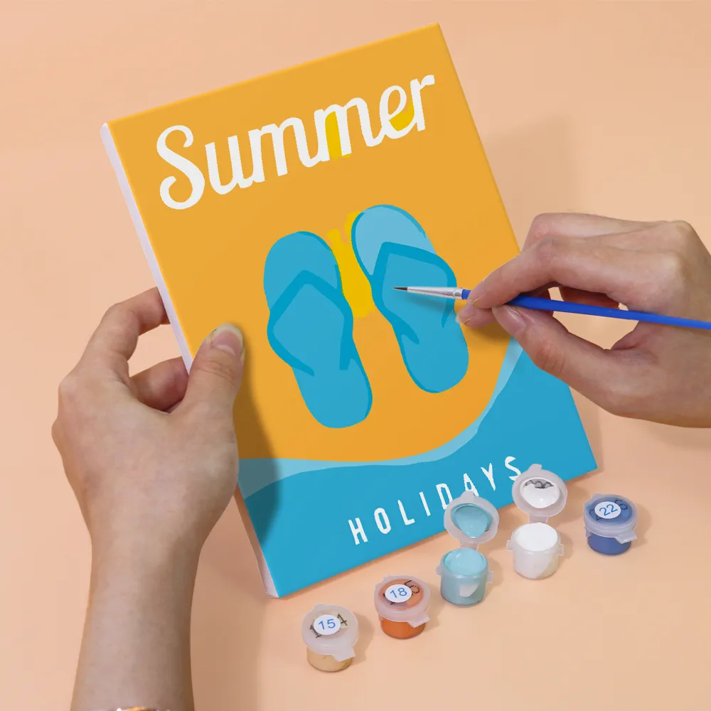 Le mini kit de peinture par numéros “Summer Vibes” capture les meilleurs aspects de l’été – soleil, mer, tongs et boissons fruitées. Ce motif coloré vous invite à rêver, vous détendre et être créatif. Parfait pour les amateurs de vacances, comme petit cadeau, ou pour des moments de bricolage relaxants. La mini toile pré-imprimée, les peintures acryliques lumineuses et le pinceau inclus garantissent un plaisir de peindre sans complication – même pour les débutants.