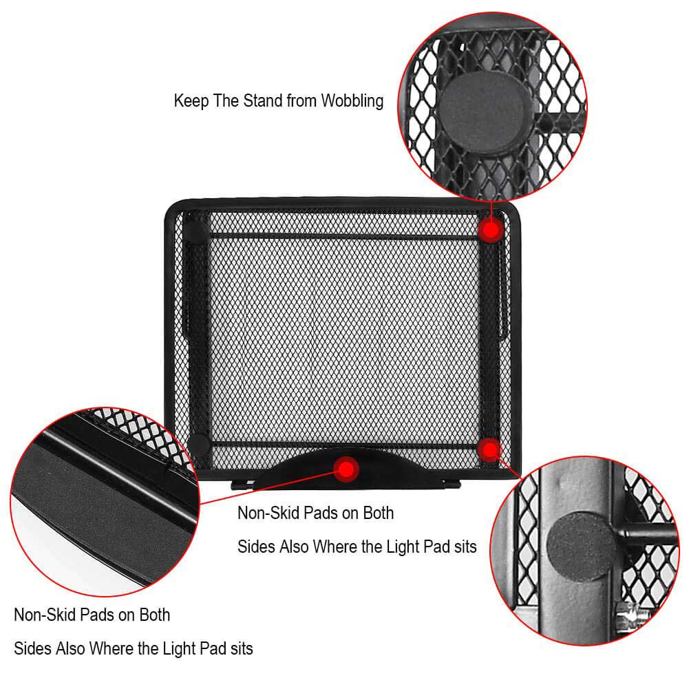 C’est pourquoi nous avons conçu un nouveau support de diamond painting qui vous permettra de changer de position pendant le travail. Ce support de diamond painting est mieux compatible avec une tablette lumineuse de diamond painting grâce à sa conception en maille.