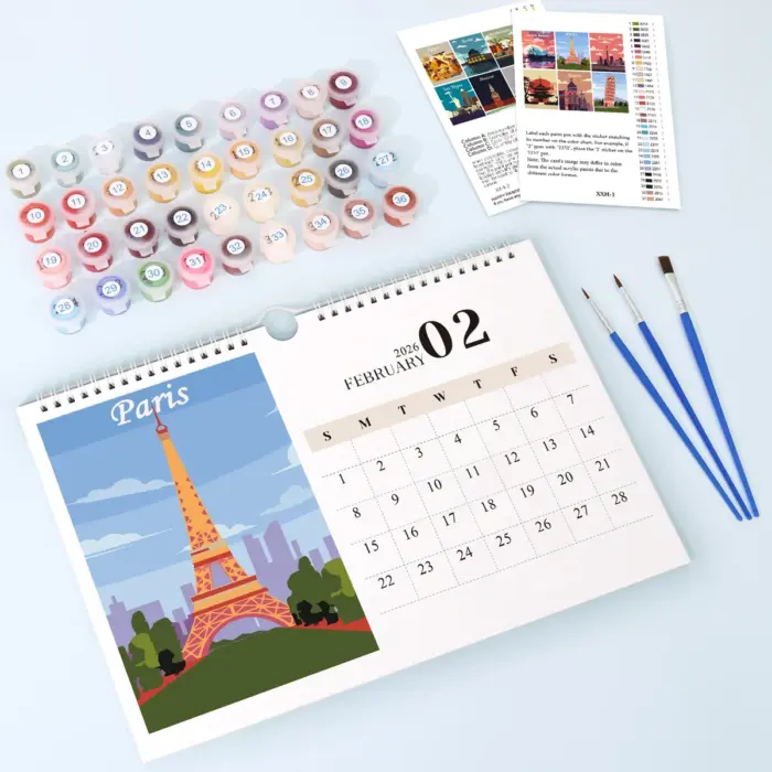 Plongez mois après mois dans le monde fascinant des métropoles – avec notre Calendrier Peinture par Numéros 2026 – Villes Célèbres. Chaque mois vous apporte un nouveau motif de ville, conçu avec amour, que vous pouvez donner vie avec vos propres couleurs. Que ce soit Paris, Rome, New York ou Tokyo – chaque illustration vous invite à vous détendre créativement et à rêver.