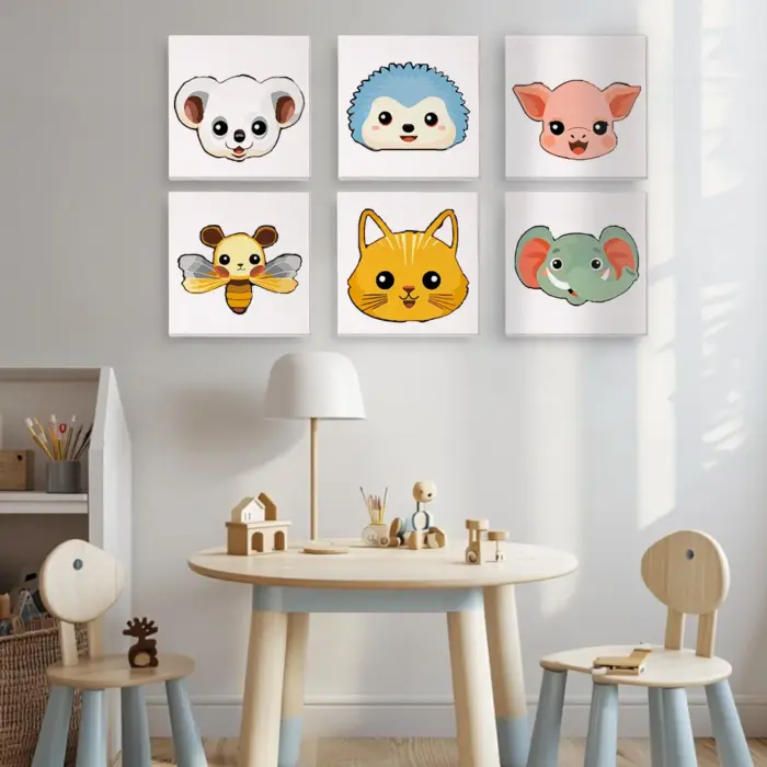 Le set de mini-peinture par numéros “Visages d’Animaux Mignons” apporte les expressions faciales les plus adorables directement sur la toile. Qu’il s’agisse de chiens souriants, de chats espiègles ou de lapins curieux – ce set ravit les enfants et les amoureux des animaux avec son style charmant. Idéal pour des heures créatives, une décoration adaptée aux enfants ou comme un doux cadeau. La mini-toile pré-imprimée, les peintures acryliques vibrantes et le pinceau inclus garantissent un plaisir de peinture facile et joyeux – convient également aux débutants.